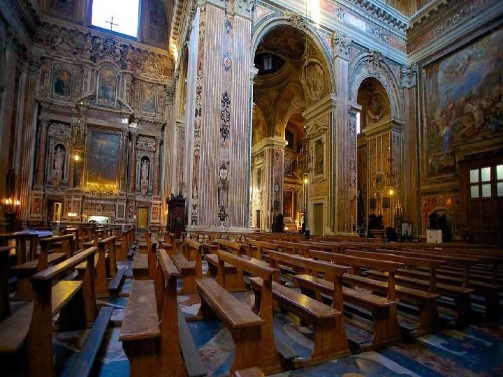 A l'emplacement de l'ancien palais des puissants princes de Salerne, dont il ne reste que l'imposante façade de pierres volcaniques taillées en pointes de diamant, se dresse L’église de Gesù Nuovo, l'une des plus importantes basiliques de Naples. A l'austérité de la façade, s'oppose un intérieur baroque dévoilant une profusion de marbres polychromes, de sculptures, de fresques et de peintures.