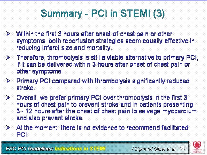 Reperfusion Options for STEMI Patients Step 1: Select Reperfusion Treatment. If presentation is < 3 hours and there is no delay to an invasive strategy, there is no preference for either strategy. Fibrinolysis generally preferred Early presentation ( ≤ 3 hours from symptom onset and delay to invasive strategy) Invasive strategy not an option Cath lab occupied or not available Vascular access difficulties No access to skilled PCI lab Delay to invasive strategy Prolonged transport Door-to-balloon more than 90 minutes > 1 hour vs fibrinolysis (fibrin-specific agent) now