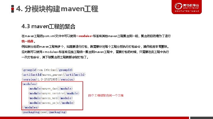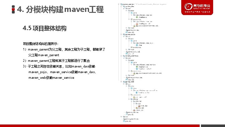 4. 分模块构建 maven 程 4. 1 分模块构建 maven 程分析 maven_parent 继承 继承 继承 maven_pojo 依赖 maven_dao 依赖 maven_service 继承 依赖 maven_web
