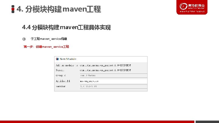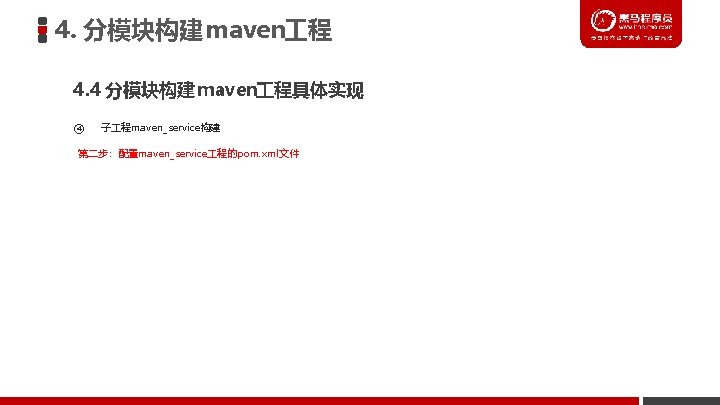 4. 分模块构建 maven 程 4. 4 分模块构建 maven 程具体实现 ④ 子 程maven_service构建 第四步:创建spring配置文件application. Context-service. xml