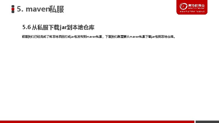 5. maven私服 5. 6 从私服下载 jar到本地仓库 ② 在maven的settings. xml文件中配置激活下载模板 <active. Profiles> <active. Profile>dev</active. Profile> </active. Profiles>