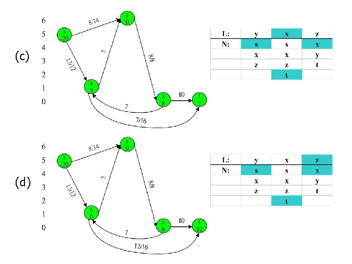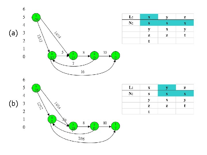 The relabel-to-front algorithm: Admissible network: G=(V, E): a flow network with source s and sink t; f is a preflow in G; h is a height function. (u, v) is an admissible edge if cf(u, v)>0 and h(u)=h(v)+1; otherwise, (u, v) is inadmissible. The admissible network is Gf, h=(V, Ef, h), where Ef, h is the set of admissible edges. p 19.