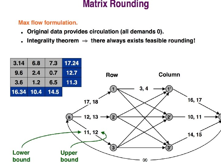 Maximum Bipartite Matching • Corresponding Flow Network. – We let the source s and sink t be new vertices not in V, and we let V’ = V U {s, t}. – E’ = {(s, u) : u ε L} U {(v, t) : v ε R} U {(u, v) : (u, v) ε E}. – Assign unit capacity to each edge. – The maximum flow in G’ = (V’, E’) realizes the maximum matching.