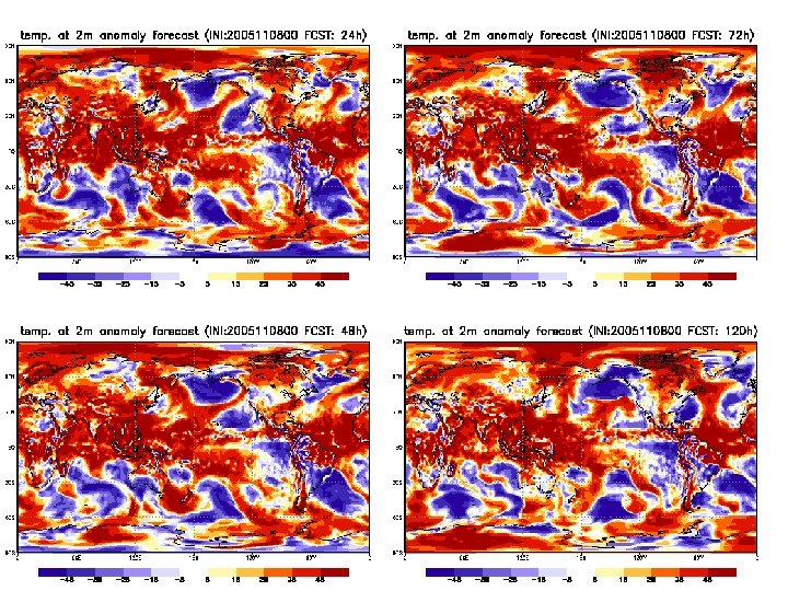 Summary of Retrospective Runs • Period: 08/20/2005 – 09/30/2005 • Statistics for – Hurricane track errors • Atlantic-, East Pacific-, West Pacific- basins, total basins – – AC scores (Northern Hemisphere) RMS errors (Southern Hemisphere) Outlier for Northern Hemisphere ROC scores for NH and SH • Conclusion – Tropical – mean of track error (slightly improved) • Improved (48 -, 72 -, 96 -hours over all) – NH – mean (improved), probabilistic (improved) – SH – mean (slightly), probabilistic (improved)