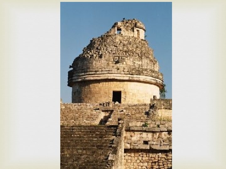 C. A-Achievements 1. Observatories- buildings from which people could study the sky so the priests could watch the stars and plan for their religious festivals. 2. Astronomy- Developed two separate calendars, one with 365 days that guided planting and harvesting. A second to keep track of their religious holidays that was 260 days long.
