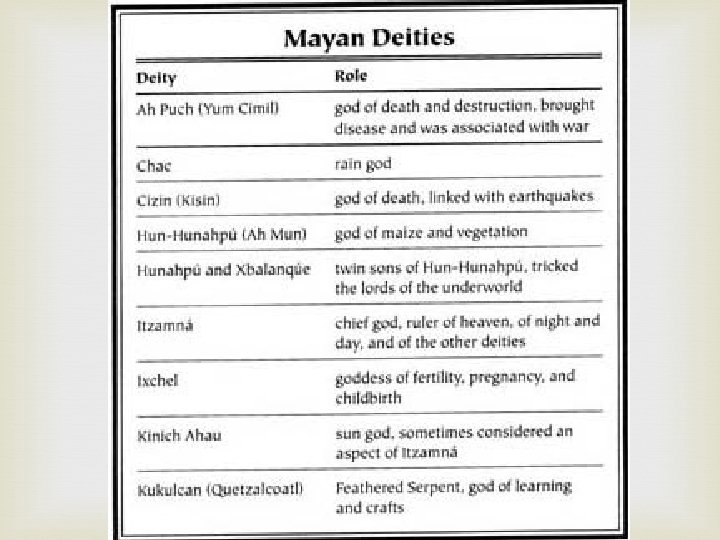 2. One noble family controlled each city the head person was called the halach unic 3. All cities or halach unic had to answer to king 4. They believed king and nobles related to gods