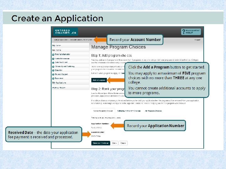 Step 3: Apply • Go to www. ouac. on. ca. Select OUAC 101 Current Ontario High School Students. Use the information in your Access Code Letter • Change your temporary PIN to a personal password. • Complete all sections of the application. • Review your selections before clicking “I Verify and Agree”. • Submit with payment, well before the 101 application deadline and any university program-specific deadlines. • Record the OUAC Ref. # and keep it in a safe place.