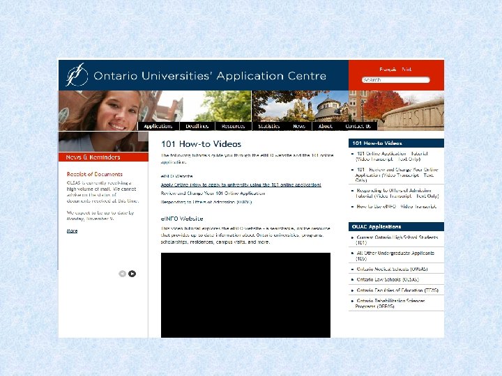 @ www. ouac. on. ca as a OUAC 101 Current Ontario Secondary School Student GOOD LUCK! Review: -101 How to Apply -101 Important Dates -101 Fees Reference: -101 Common Questions -101 How-to-Videos