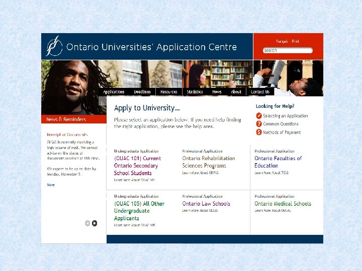 Important Dates • January 13 th, 2016 Deadline to submit your completed application to the OUAC. • May 27 th, 2016 The latest date by which you can expect a response from an Ontario university. This includes: – an offer of admission; – a refusal; or – a deferral, pending the receipt of specific information. • June 1 st, 2016 The earliest date you may be required to respond to an Ontario university offer of admission and give a financial commitment (e. g. , registration deposit, residence deposit, etc. ).