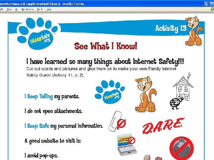 La Coalition Internet Keep Safe voudrait remercier les commanditaires privés qui nous ont permis de réaliser cette présentation : Adobe AOL Bearing. Point Convergys Dell Disney Online Intel Oracle Œuvres des manoirs Ronald Mc. Donald Siebel Systems Symantec Target Yahoo! © Coalition Internet Keep Safe 2006. Tous droits réservés. Faux-Pas, Faux-Pas la chatte techno, Curseur et i. Keep. Safe. org sont des marques de services et de commerce de la Coalition Internet Keep Safe Cette présentation est gracieusement fournie par la Coalition Internet Keep Safe et doit être copiée et distribuée aux fins d’utilisation dans les classes, sous réserve que cette notification apparaisse sur chaque reproduction, numérique ou autre. Les images de Mc. Gruff, the Crime Dog™ et le slogan « Take a Bite Out of Crime™ » sont des marques de commerce appartennant au National Crime Prevention Council.