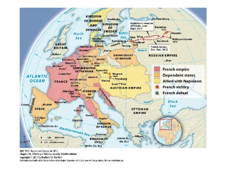 V. The Napoleonic Era, 1799 – 1815 C. 5. 6. 7. The Grand Empire and Its End Invaded Russia in June 1812 Retreat from Russia; military disaster European patriots called for a “war of liberation”; Napoleon abdicated in 1814