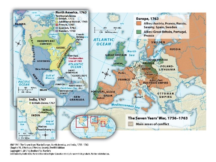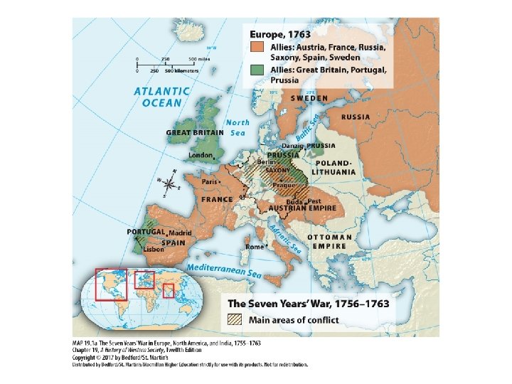 I. Background to Revolution C. The Seven Years’ War 1. Prussia survived attempt to re-establish Habsburg rule 2. War broke out in North America between the French and British colonies 3. The 1763 Treaty of Paris 4. Britain, the leading European power 5. France retained Caribbean colonies 6. Both governments raised taxes to repay loans