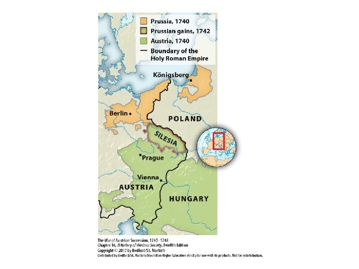 V. Enlightened Absolutism A. Frederick the Great of Prussia 1. Frederick II (r. 1740 – 1786) 2. The European War of the Austrian Succession (1740 – 1748) 3. The Seven Years’ War (1756 – 1763) 4. Peter III called off the attack against Frederick
