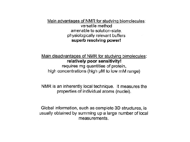 Protein Structure Determination by NMR • Stage I—Sequence specific resonance assignment • State II – Conformational restraints • Stage III – Calculate and refine structure