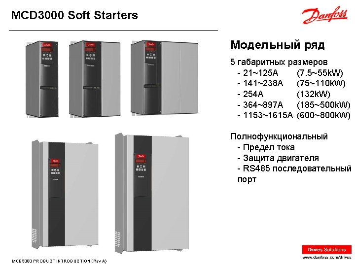 MCD 3000 Soft Starters Общая схема Габарит 4 185 k. W ~ 500 k. W (400 V) Габарит 5 600 k. W ~ 800 k. W (400 V) MCD 3000 PRODUCT INTRODUCTION (Rev A)