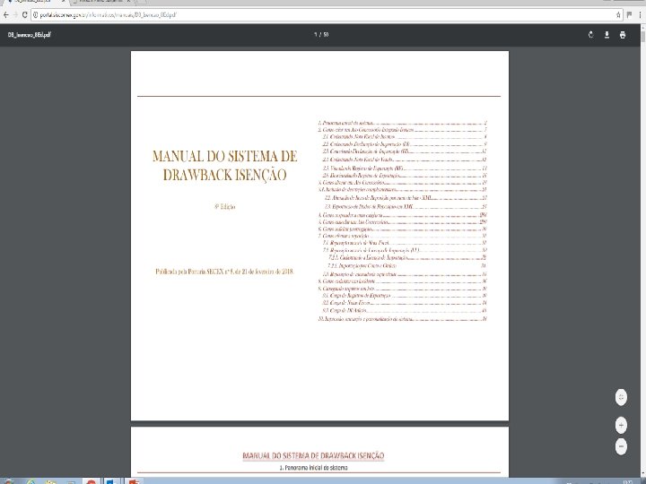 MDIC Ministério da Indústria, Comércio Exterior e Serviços PASSO A PASSO O passo a passo foi criado para ensinar como: • Criar, alterar, excluir, prorrogar, incluir Nota Fiscal de Compra no Mercado Interno e preparar a baixa de AC • Disponível no site: http: //portal. siscomex. gov. br/informativos/manuais • No mesmo site: Manual do Drawback Isenção