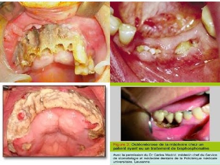 2) Médicaments interférant avec processus de cicatrisation 2. 4 -AUTRES • Anticoagulants • Héparine • AVK • AOD • 2 Diphosphonates • Acide alendronique Fosamax® Adrovance® • Acide risédronique Actonel® • 2 antirhumatismaux d’action lente • Pénicillamine Trolovol® • Tiopronine • …