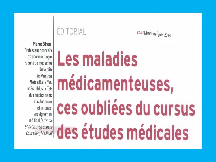 Et si c’était le médicament ? • Réflexe iatrogène+++ – Devant tout malade++++ • Maladies induites par les médicaments