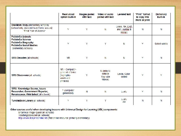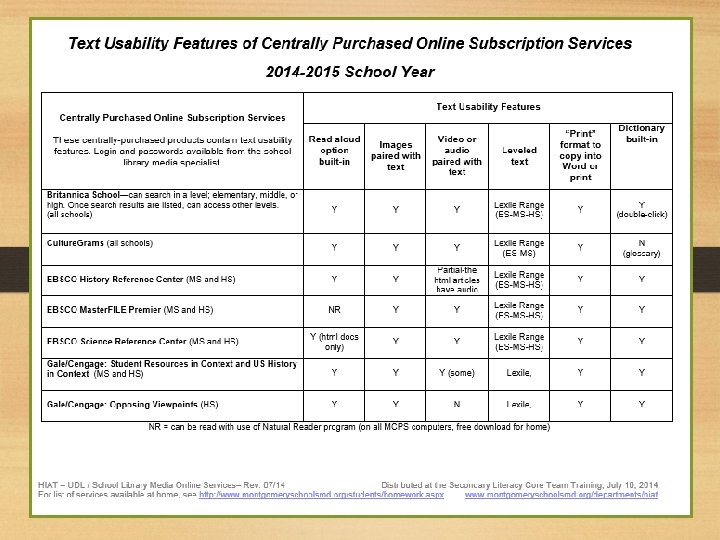 Online Opportunities for Core Literacy Best Practices • Varied levels of text for search topic • Multimedia paired with text resources to support vocabulary, academic language, background knowledge and comprehension • Download or copy text into Word for usability adjustments (digital or paper): • Font size • Chunking • Embedded questions/prompts/think alouds • Images • Highlight critical features or new vocabulary