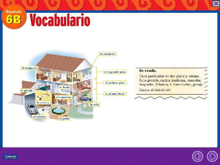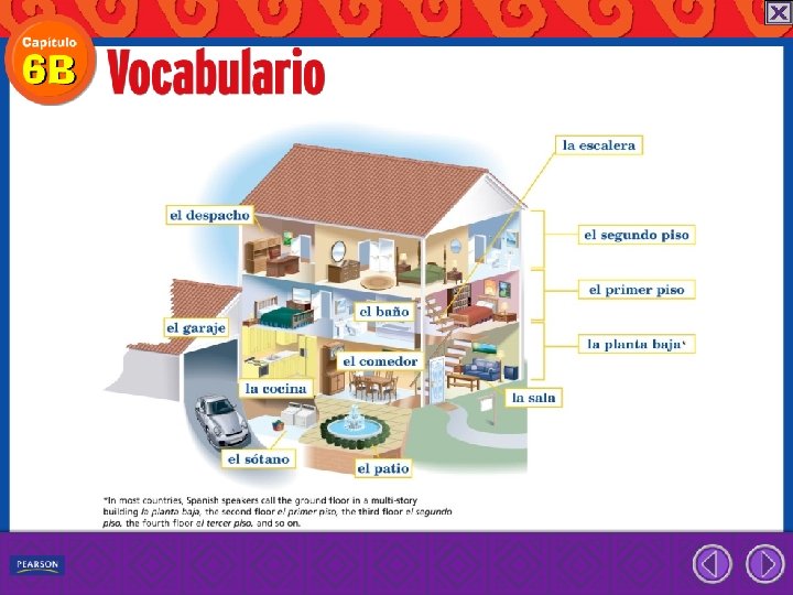 to talk about houses or apartments el apartamento el baño la cocina el comedor el cuarto el despacho la escalera el garaje el piso la planta baja el primer piso la sala el segundo piso el sótano apartment bathroom kitchen dining room home office stairs, stairway garage story, floor ground floor second floor living room third floor basement
