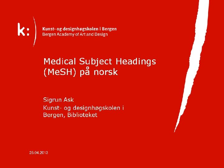 Flere ting … • Me. SH brukes i databasene BIBSYS, Cochrane, Sve. Med+ samt i flere helseportaler. Norsk Me. SH er nylig implementert i Sve. Med+. . . Står BIBSYS for tur?