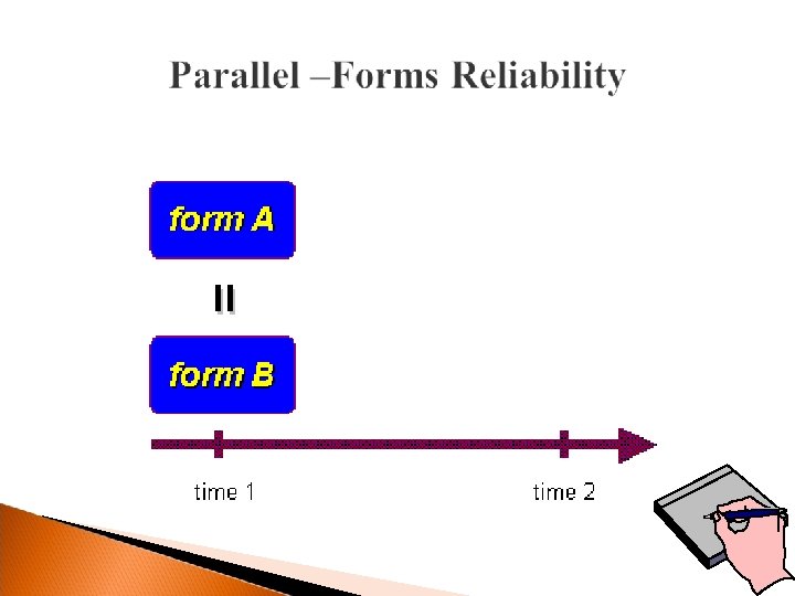 � Measure instrument at two times for multiple persons. � Compute � Assumes correlation between the two measures. there is no change in the underlying trait between time 1 and time 2.