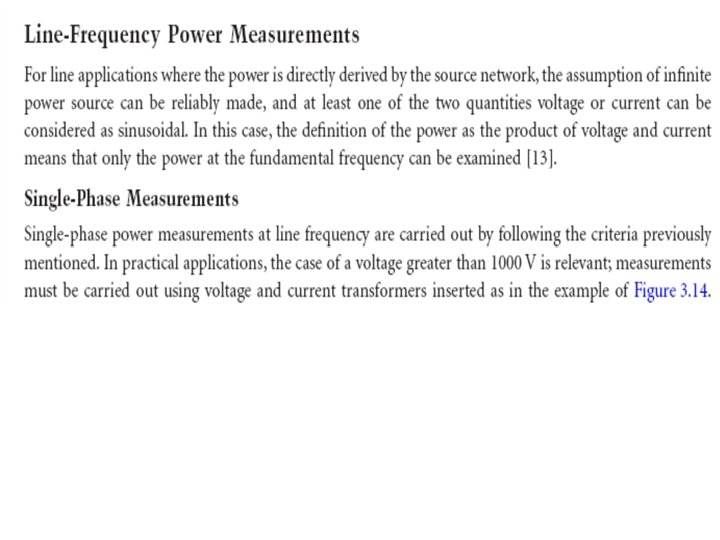 The above has presented the power definitions applied to ac circuits with the restrictions of sinusoidal quantities. In the most general case of distorted quantities, obviously symbolic representation can no longer be applied. In any case, active power is always defined as the mean power dissipated in one period. As far as methods and instruments for ac power measurements are concerned, some circuit classification is required. In fact, the problems are different, arising in circuits as the frequency of power supply increases. Therefore, in the following, ac circuits will be classified into (1) line-frequency circuits, (2) lowand medium-frequency circuits (up to a few megahertz), (3) and (3) high-frequency circuits (up to a few gigahertz). Line-frequency circuits: related specifically to the three-phase power supply