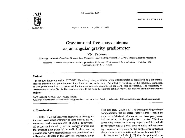 . ISSN 0021_3640, JETP Letters, 2010, Vol. 91, No. 10, pp. 495– 499. © Pleiades Publishing, Inc. , 2010. Original Russian Text © A. V. Gusev, V. N. Rudenko, 2010, published in Pis’ma v Zhurnal Йksperimental’noі i Teoreticheskoі Fiziki, 2010, Vol. 91, No. 10, pp. 543– 547. Gravitational Modulation of the Optical Length of Long Baseline Laser Interferometers A. V. Gusev* and V. N. Rudenko** Sternberg Astronomical Institute, Moscow State University, Universitetskii pr. 13, Moscow, 119992 Russia * e_mail: avg@sai. msu. ru ** e_mail: rvn@sai. msu. ru Received February 15, 2010 The effect of quasi static variations of the Earth’s gravitational field on the output signal of long baseline gravitational-wave interferometers has been considered. The relativistic representation of the gravitational field in the form of a varying refractive index is used. An analytical calculation with numerical estimates of the tidal effect has been performed to explain the recent results observed on the LIGO interferometers