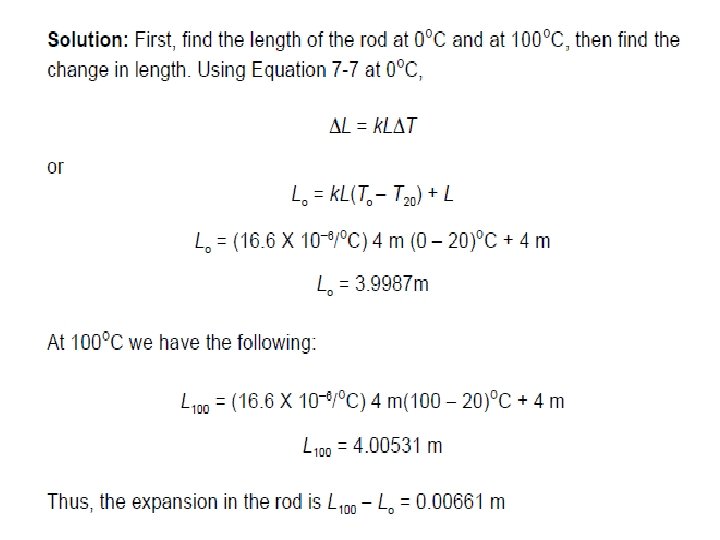 ΔL= k. LΔT The sideways displacement of the strip is much larger than the small lengthways expansion in either of the two metals • How much will a 4 -m-long copper rod at 20°C expand when the temperature is changed from 0 to 100°C?