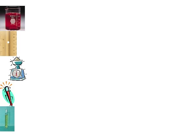 Measurement Tools and Units • Draw and name each of the following: Ruler Beaker Thermometer Scale Graduated Cylinder