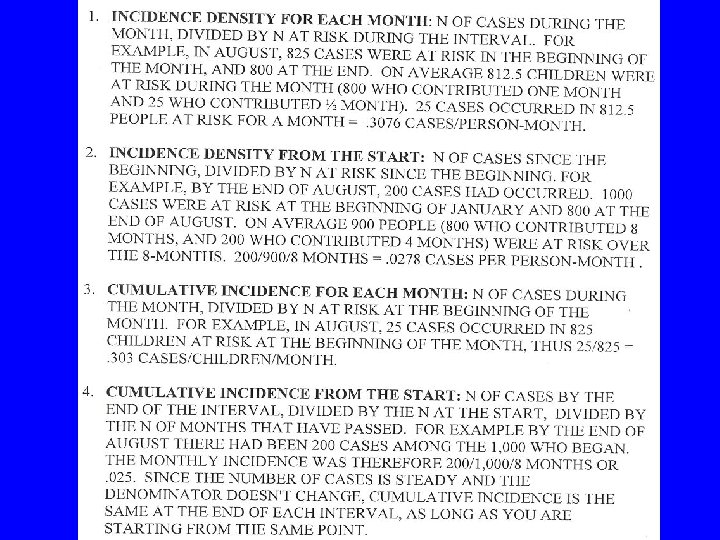USES OF INCIDENCE DENSITY AND CUMULATIVE INCIDENCE • Incidence density gives the best estimate of the true risk of acquiring disease at any moment in time. • Cumulative incidence gives the best estimate of how many people will eventually get the disease in an enumerated population.