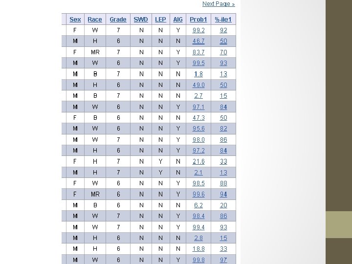 Steps • 1. ) Gather and sort predicted percentiles for students • 2. ) Identify differentiation strategies based on predicted percentiles • 3. ) Analyze benchmark and other data to predict growth • 4. ) Respond to data with keeping or altering differentiation strategies