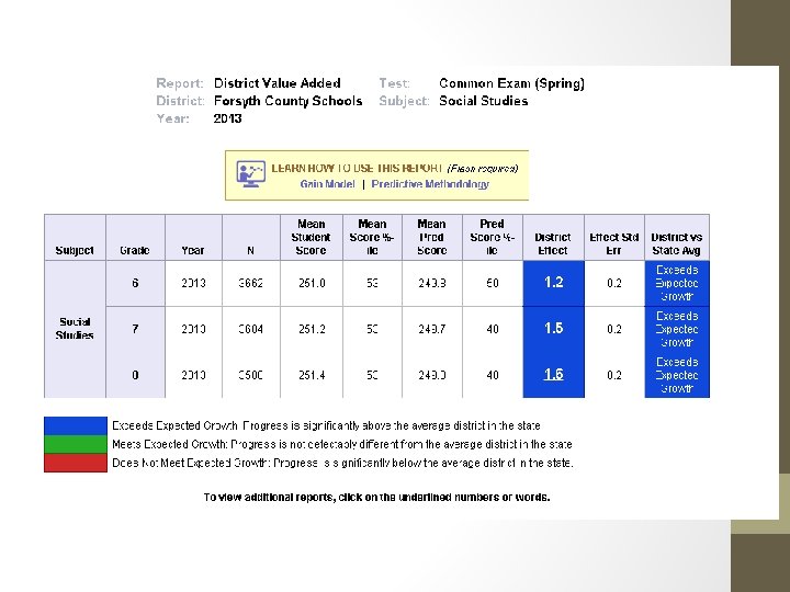 Important Considerations • Analyze data in terms of groups of students not individual students. • Data is only a prediction because it is based on percentiles in one county not the entire state.
