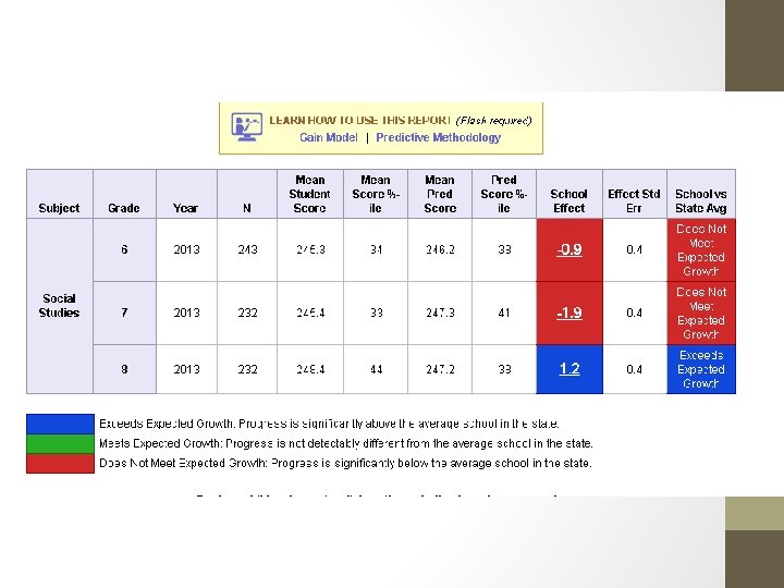 What is growth? • Difference between how students were predicted to score and how students actually scored. • Percentile scores based on raw scores from around the state. • Teachers rarely look at predicted percentiles • Teachers confuse percentage and percentile