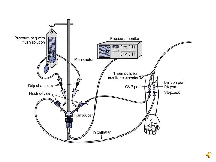 2. Water manometer system • CVP can be measured using a fluid manometer attached the intravenous fluid line. • Disadvantages: - It exposes the patient to complications of infection and air embolism.