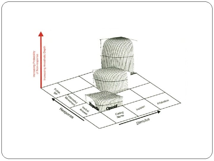 The most important is that for any stimulus response pair, depth of anesthesia is the probability of nonresponse. More generally, depth of anesthesia is the probability of nonresponse to stimulation, calibrated against the strength of the stimulus, the diffi. Culty of suppressing the response, and the druginduced probability of nonresponsiveness.