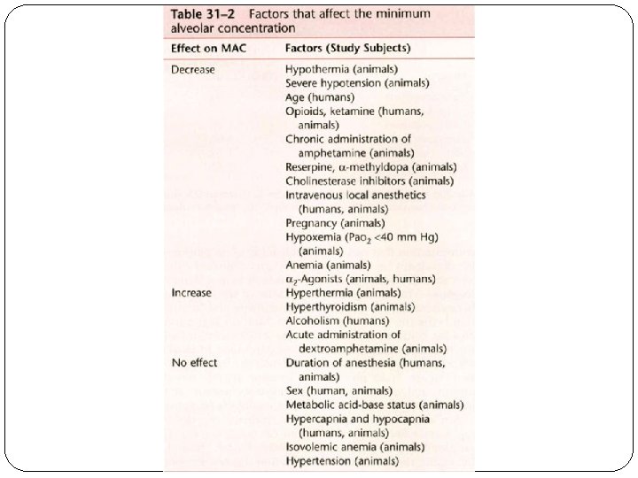 The MAC concept has been expanded by evaluating other clinical end points and defined stimuli. the MAC of anesthetic that would allow opening of the eyes on verbal command during emergence from anesthesia ("MACawake) Generally, MACawake values are a third to a fourth the MAC values for surgical incision.