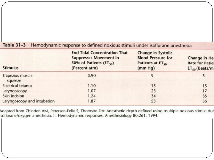 Zbinden and colleagues systematically examined the interaction of isoflurane concentrations with the hemodynamic response to different noxious stimuli.