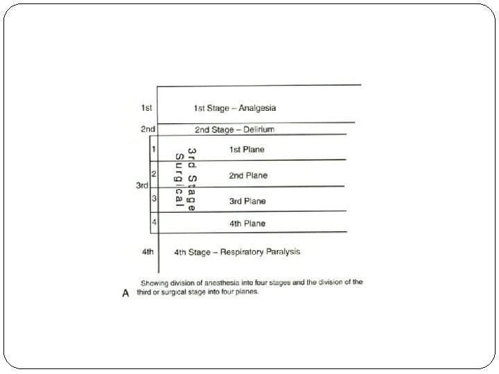 Plomley, in 1847, was the first to attempt to define depth of anesthesia. He described three stages: intoxication, excitement (both conscious and unconscious), and the deeper levels of narcosis. In that same year, John Snow described "five degrees of narcotism" for ether anesthesia.