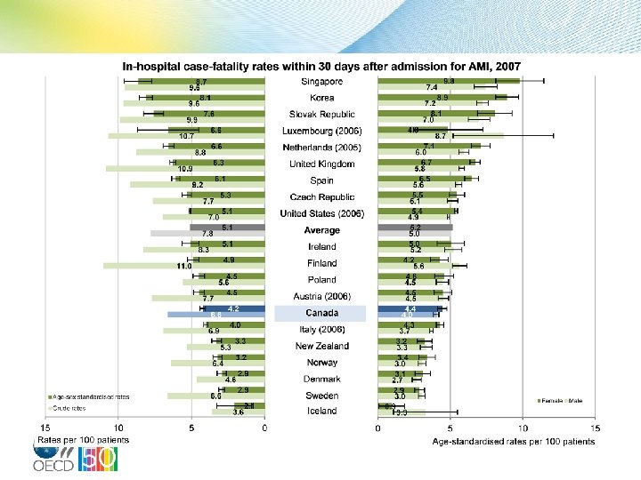 COPD hospital admission rates, population aged 15 and over, 2009 (or nearest year) 71 79 91 111 114 126 135 137 139 146 149 154 163 183 198 201 206 213 217 222 228 229 230 234 243 248 277 310 312 319 364 400 300 200 100 Rates per 100 000 population 0 Portugal France Switzerland Mexico Slovenia Italy Malta Sweden Spain Finland Czech Republic Netherlands Latvia Singapore Canada OECD Germany Slovak Republic United Kingdom Poland Korea Belgium Iceland United States Israel Norway Hungary Denmark Austria Australia New Zealand Ireland 0 48 Female Male 123 71 123 106 123 65 185 84 187 47 261 143 137 43 276 84 241 105 209 136 189 99 248 74 339 167 215 164 251 159 259 135 303 203233 136 330 159 318 173 308 241 226 229 236 333 157 207 266 202 310 284 275 238 397 280 370 305 354 324 437 400 600 200 Rates per 100 000 population 45 107 Note: Rates are age-sex standardised to 2005 OECD population. 95% confidence intervals are represented by H. Source: OECD Health Data 2011.
