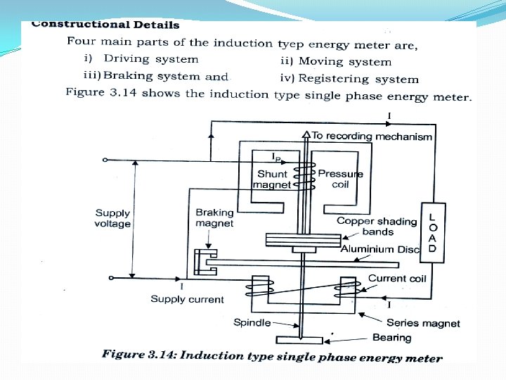 INDUCTION TYPE INSTRUMENT � � � Induction type wattmeter consists of two laminate electromagnets known as shunt electromagnet and series electromagnet respectively. Shunt magnet is excited by the current proportional to the voltage across load flowing through the pressure coil and series magnet is excited by the load current flowing through the current coil. A thin disc made of Cu or Al, pivoted at its centre, is placed between the shunt and series magnets so that it cuts the flux from both of the magnets.