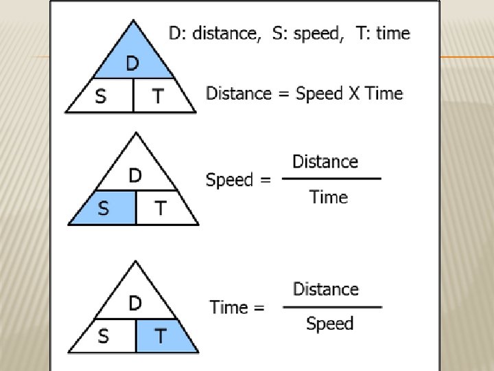 SPEED/VELOCITY/ACCELERATION Speed=Distance ÷ Time � Time=Distance ÷ Speed � Distance = Speed X Times � https: //www. youtube. com/watch? v=8 glf. UANj. Bb. Y Velocity=Distance ÷ Time � Time= Distance ÷ Velocity � Distance=Time X Velocity � https: //www. youtube. com/watch? v=Rl. Fg. R 297 o 8 I Acceleration=Velocity ÷ Time � Time= Velocity ÷ Acceleration � Velocity=Time X Acceleration �
