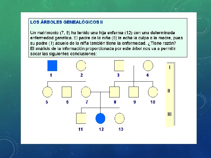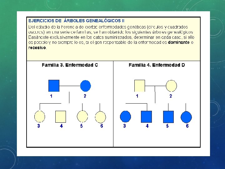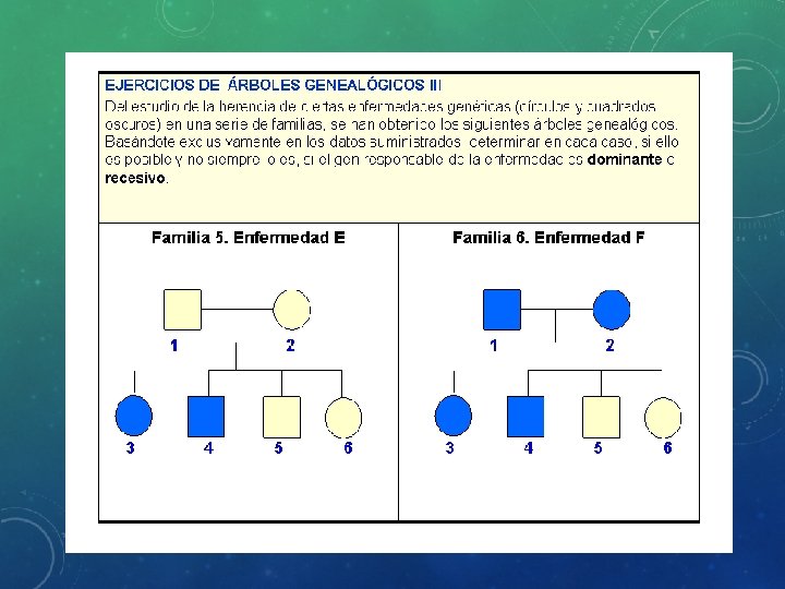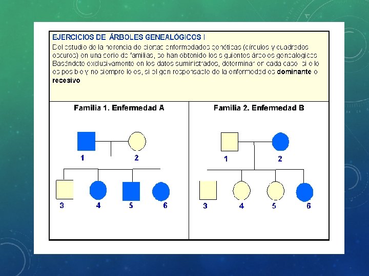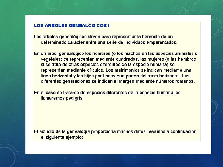 HERENCIA LIGADA AL SEXO • Los cromosomas X e Y no son homólogos, es decir, aunque llevan genes estos son diferentes. Cromosoma Y: Es mucho más pequeño que el X. Contiene más de 200 genes y unos 50 millones de pares de bases. Además de determinar el sexo, algunas enfermedades asociadas a mutaciones de este cromosoma son la azoospermia y la disgenesia gonadal.