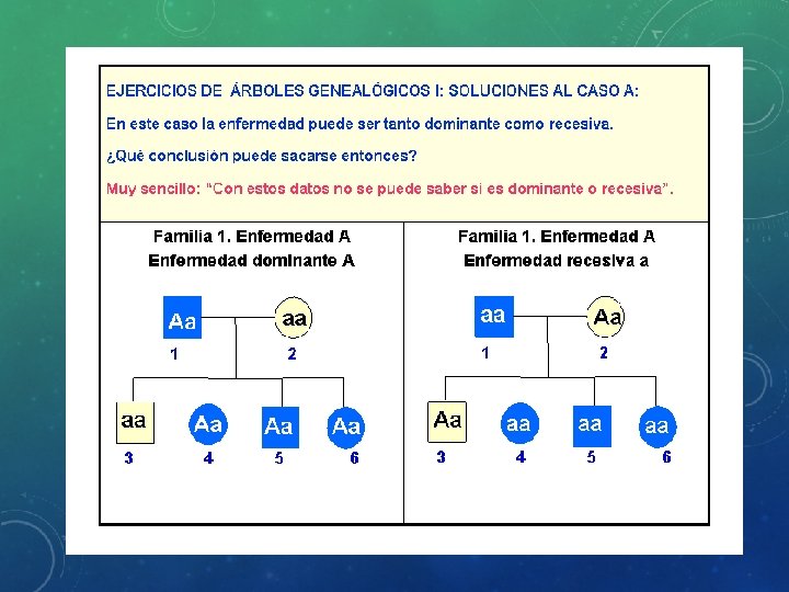 RELACIONES ENTRE LOS ALELOS • ALELOS DOMINANTES Y RECESIVOS Cuando dos alelos van juntos en cromosomas homólogos, siempre se expresará uno de ellos que será el ALELO DOMINANTE. El otro que no se manifiesta es el ALELO RECESIVO. Al alelo Dominante se le asigna la letra mayúscula del GEN. A Al alelo Recesivo se le asigna la letra minúscula del gen. a