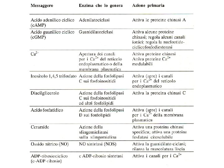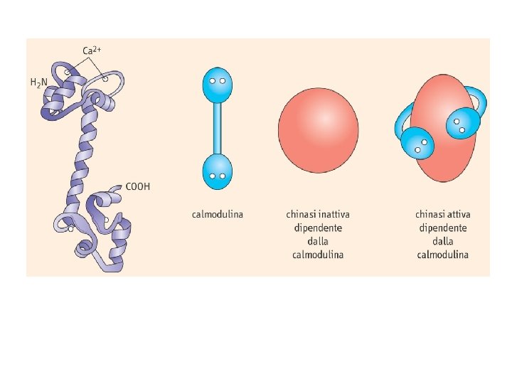 Enzimi regolati da calcio o da calmodulina Adenilato ciclasi Proteina chinasi Ca 2+-dipendente Ca 2+-Mg 2+-ATPasi Proteina chinasi Ca 2+-fosfolipide-dipendente Fosfodiesterasi dei nucleotidi ciclici Glicerolo 3 -fosfato deidrogenasi Glicogeno sintasi Guanilato ciclasi Miosina chinasi NAD chinasi Fosfolipasi A 2 Fosforilasi chinasi Fosfoproteina fosfatasi 2 B Piruvato carbossilasi Piruvato deidrogenasi Piruvato chinasi