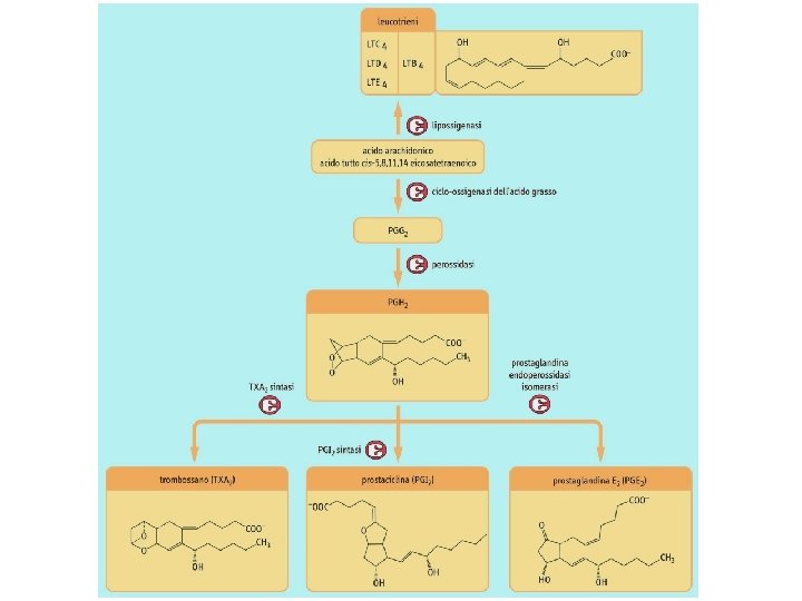 Competizione per il substrato Immunomodulazione Infiammazione Attiv. leucociti Perm. Vasale Musc. Liscia ipersensibilizzazione ogni cellula produce un tipo solo di prostanoide