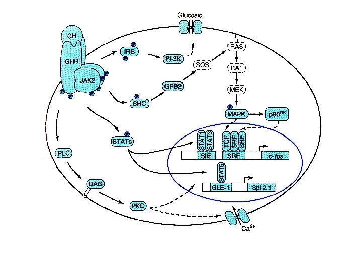 I recettori per prolattina, eritropoietina, ormone crescita e citochine non hanno attività chinasica intriseca La fosforilazione sarà svolta da altre proteine: Tyk-2, JAK 1 o JAK 2 Altre vie in comune ad altri ormoni Dimerizzazione e traslocazione nucleare per l’interazione con elementi di risposta specifici: all’interferone, al siero ecc.