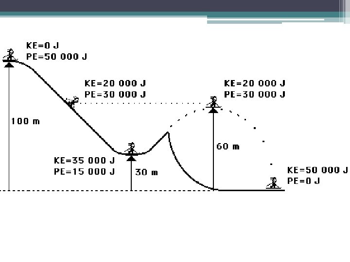 • We always have to indicate a reference level Ex. The gravitational potential energy is 30 J relative to the Earth’s surface