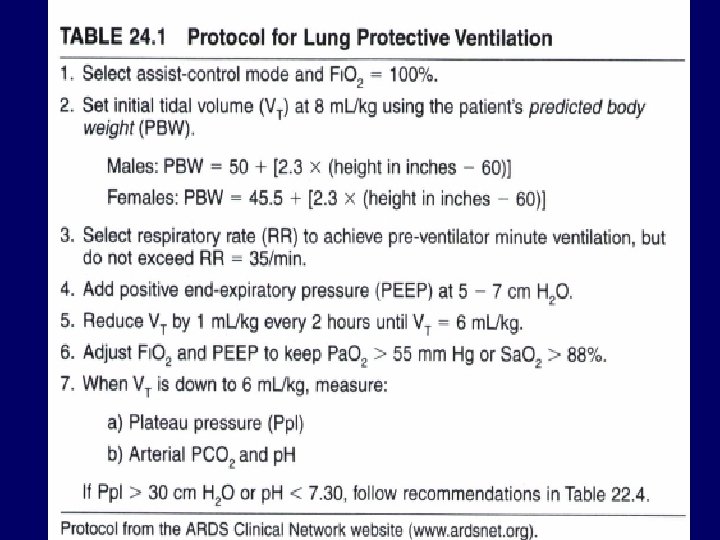 Vt ARDS What is the recommended Vt in ARDS? l Vt = 6 ml/kg l Vt < 6 ml/kg if Pplateau > 30 – 35 cm. H 2 O What are the complications of low Vt? l Elevated Pa. CO 2 l l Permissive hypercapnea Alveolar de-recruitment l Hypoxemia