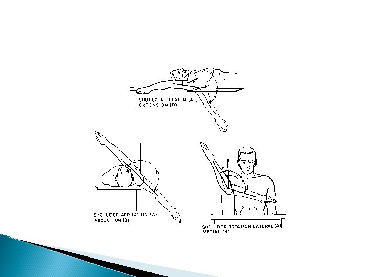 Osteokinematics � Movements � Voluntary � Ex taking place at bones shoulder flexion / extension Hip medial / lateral rotation